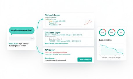 Junior engineers describe issues in plain English. Our AI diagnoses across all systems and provides exact fixes or auto-remediates.